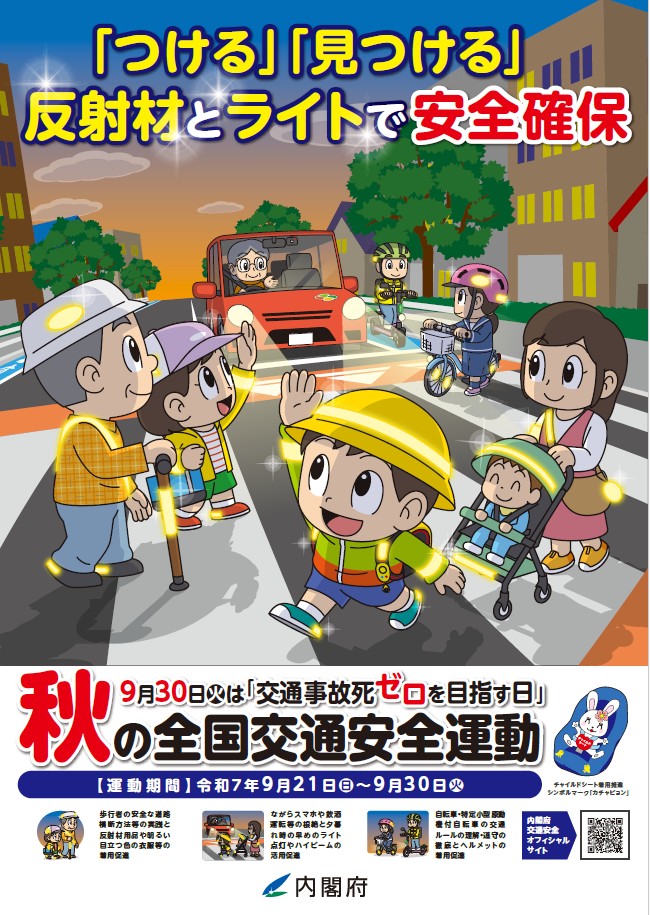9月21日(日)~30日(火)までの10日間、「秋の全国交通安全運動2025」が実施されます。